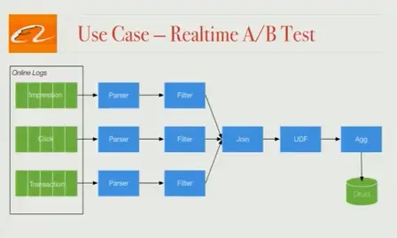 我们的工程师会定期测试不同的搜索算法,并且需要尽可能快地评估出效果。现在这种评估每天运行一次,因为想实时分析效果,所以我们使用Blink构建了一个实时A/B测试框架。