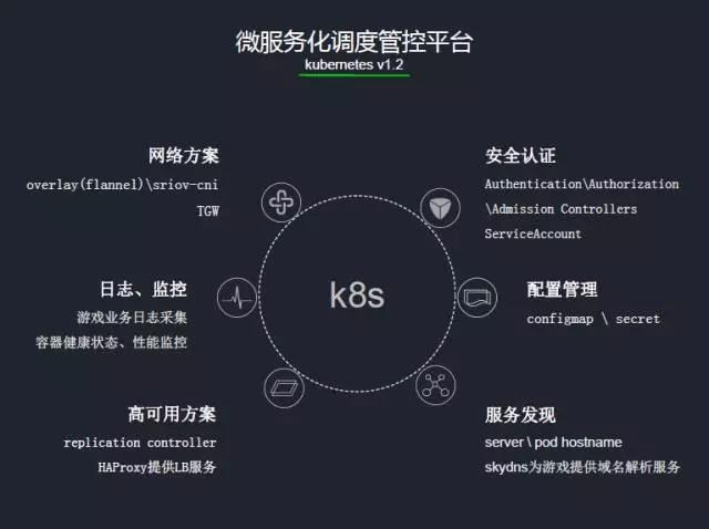 4 、安全方面: kubernetes 集群承载着整个游戏容器资源的调度、管理。不管是人为误操作,还是黑客入侵,造成的影响将是非常之大。所以安全是我们需要考虑的重点,结合 kubernetes ,我们目前做了以几方面,后面会有更加的安全策略提供。