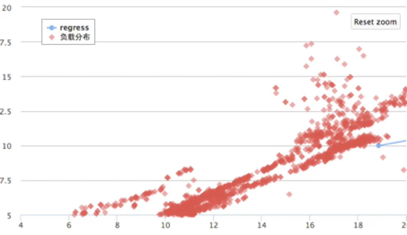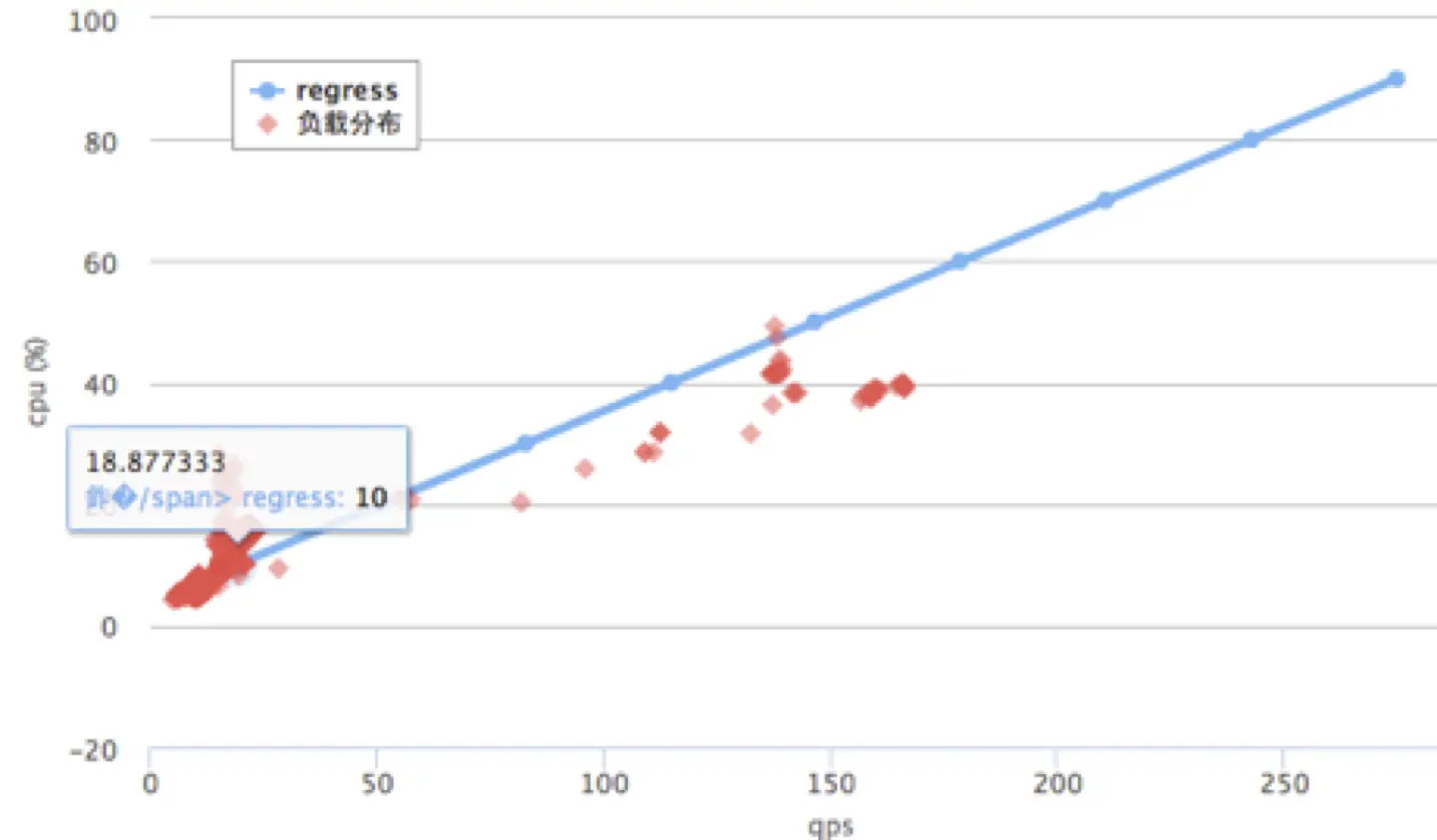 但实际场景中,情况要复杂得多,在不同压力下,随着物理机的利用率整体饱和度的上升,性能会有一定的损耗,将不同压力下测算的服务能力记录,并作一次回归,预测出目标压力下,大致损耗度,并用刚才计算好的服务能力减去目标压力下的损耗度即可,