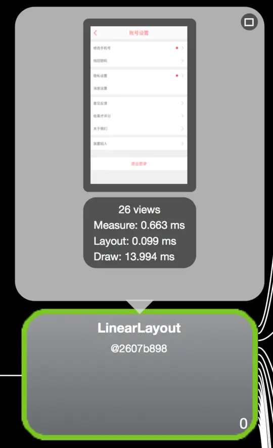 我们通过UiAutoMatorViewer(无需root,相比Hierarchy Viewer只能查看布局层次,不能得到绘制时间)看一下布局的层次