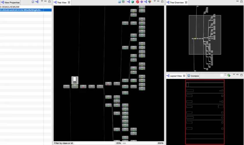 幸运的是,我们有Hierarchy Viewer这个方便可视化的工具,可以得到:树形结构总览、布局view、每一个View(包含子View)绘制所花费的时间及View总个数。