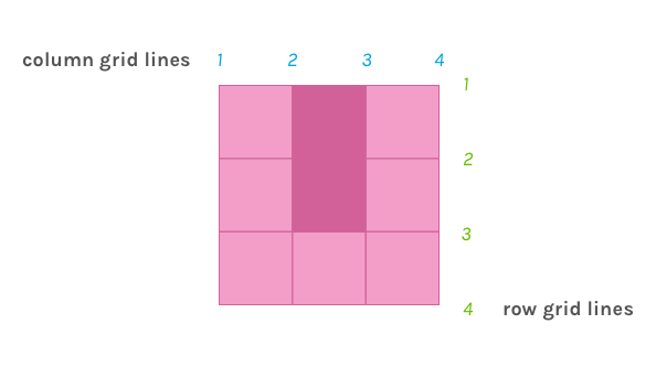 网格列指的是两个相邻垂直线的空间。列的尺寸由grid-template-columns属性来决定。另一个方面,网格行 是两个相邻平行线之间的空间。它的尺寸由grid-template-rows属性决定。