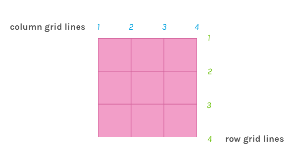 The grid is an intersecting set of horizontal and vertical grid lines that divides the grid container’s space into grid areas, into which grid items (representing the grid container’s content) can be placed