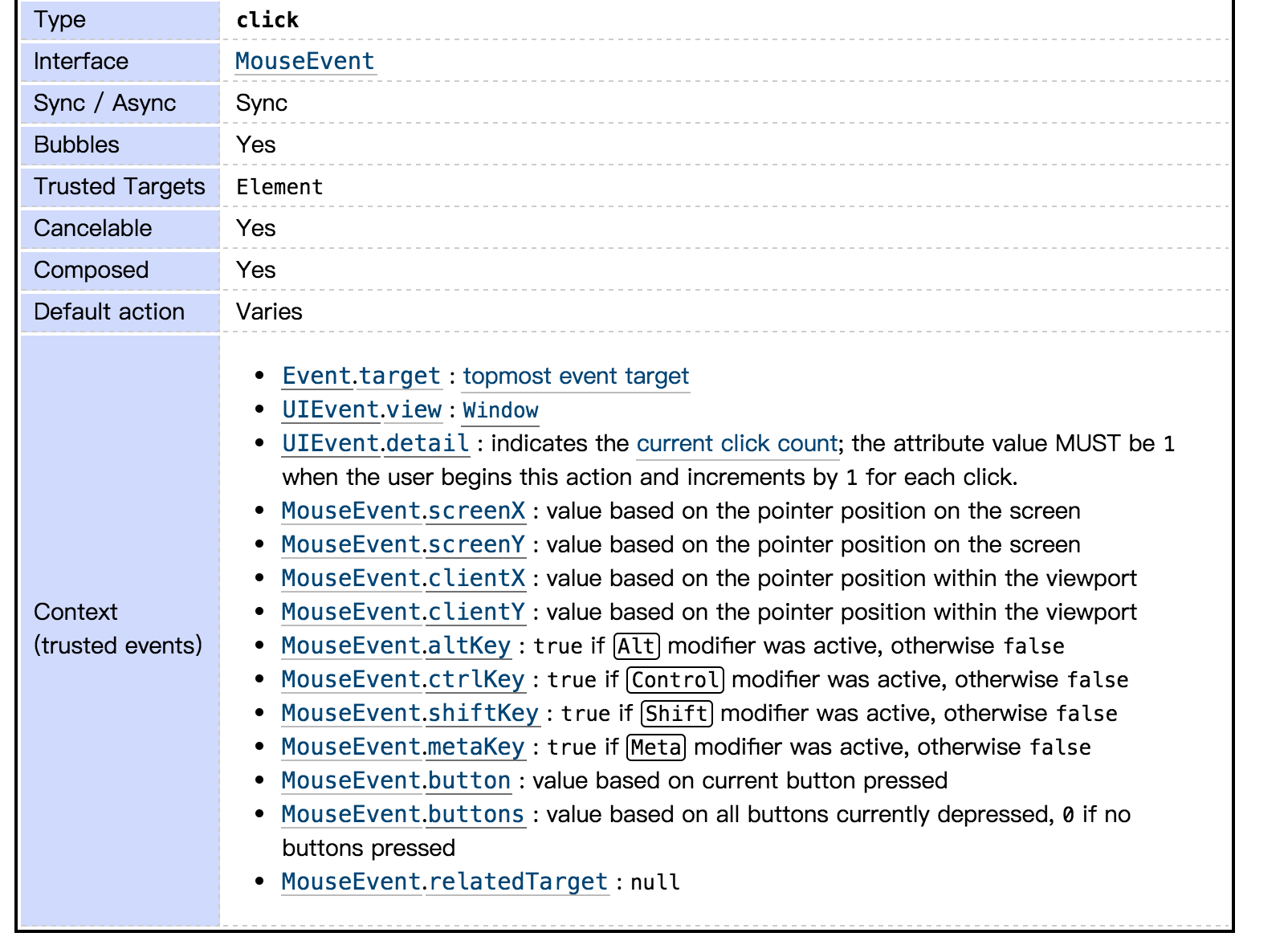 基于这个猜想,我开始翻阅mozilla和W3C的文档来了解mouseEvent。