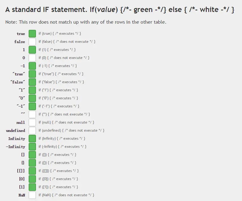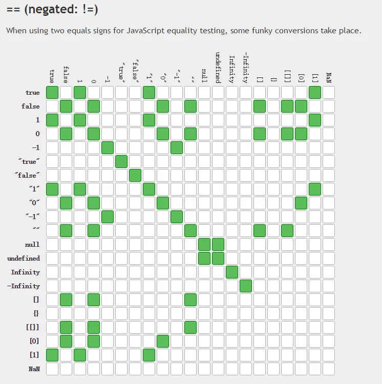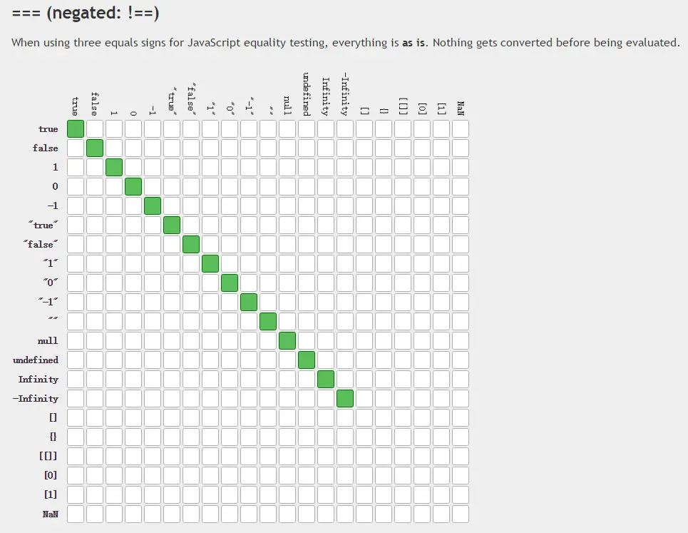 GitHub上有一个经典的比较关系图,dorey.github.io/JavaScript-…,以表格的形式系统总结了宽松相等==,严格相等===,if()条件语句中使用不同数据类型对应的结果,很有意义: