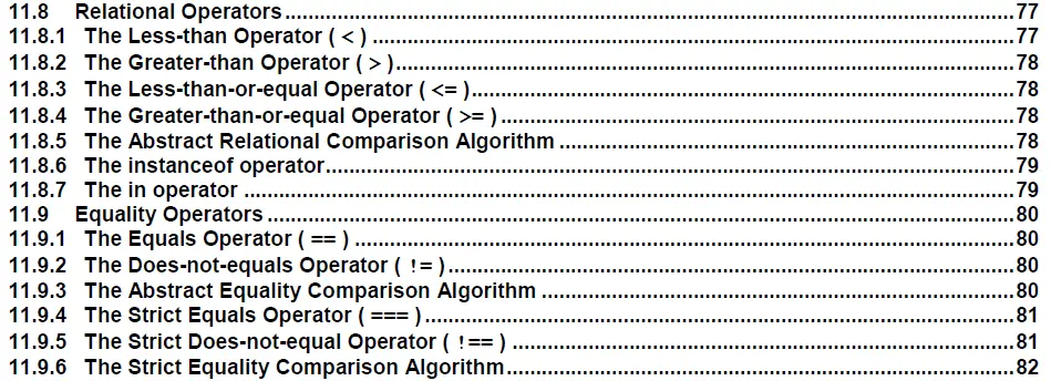 在javascript开发中,比较操作是十分常见的。由于显式/隐式强制类型转换机制的存在,我们在使用比较运算时显得过于随意,也许表面上看并没有什么错误(比如在if()语句中判断两值相等时顺手就写成 == ),但是这可能会埋下很多不易发现的隐患。对于比较操作(相等关系和不等关系),在javascript中其实是有一套完善的机制的。本文依据ES5规范《ECMAScript Language Specification ECMA-262