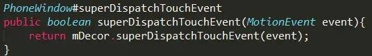 Window是个抽象类,Window的superDispatchTouchEvent方法也是个抽象方法,PhoneWindow是Window的唯一实现类。
