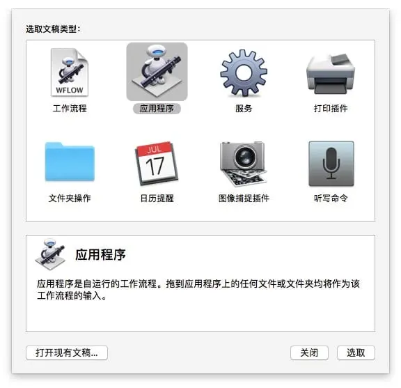 打开Automator,新建一个应用程序