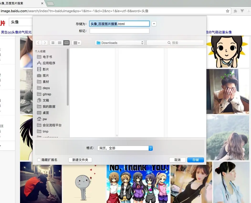 打开页面后尽情的往下滚动页面,图片就会源源不断的加载出来,当你觉得差不多的够了的时候,ctrl+s(mac上command+s)保存当前网页到本地,记得要选“网页,全部”,这样刚才加载的图片就都保存在本地了