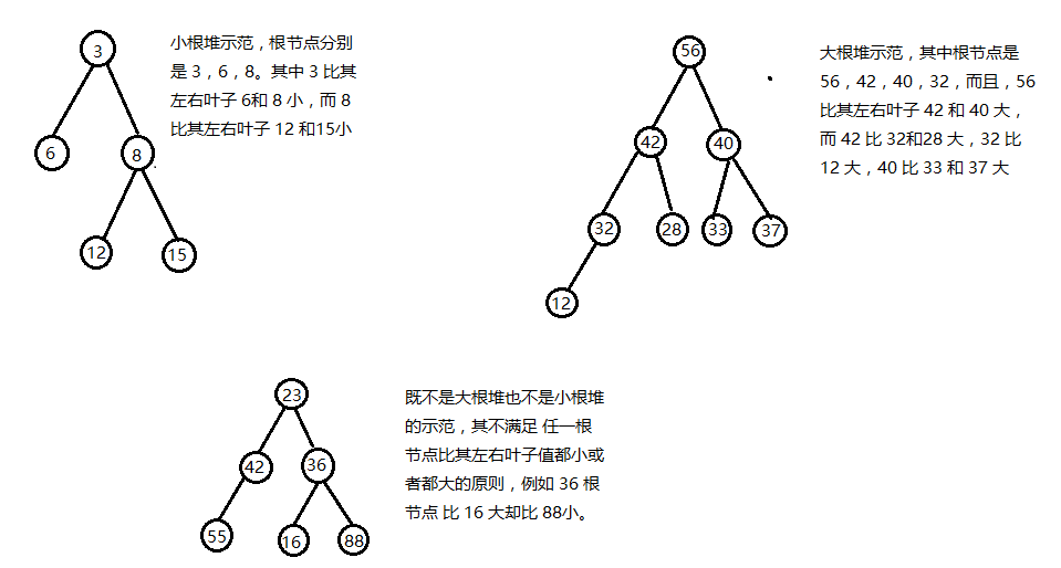 堆是基础数据结构中二叉树的一种,堆不一定是完全二叉树但是一般采用完全二叉树,主要是利于存储和运算,堆分三种,下面我用图片直观地显示出来。