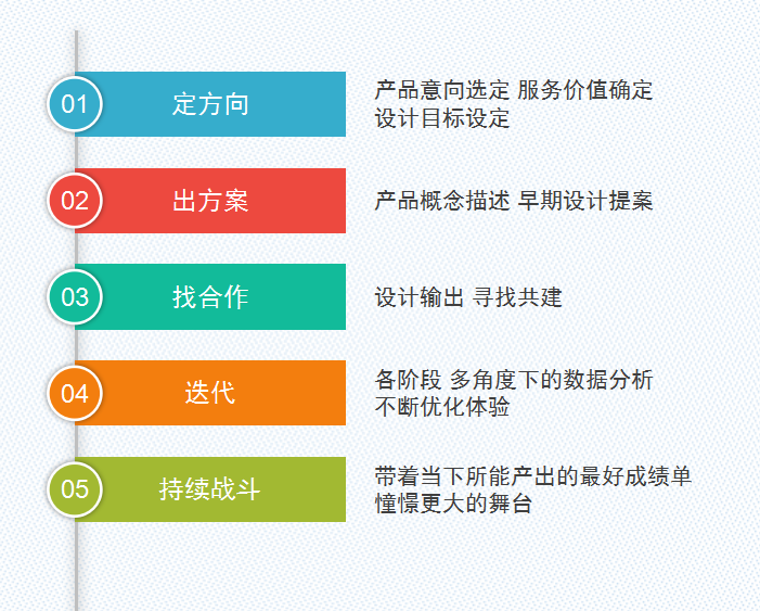 从定方向--出方案--找合作--迭代--持续战斗,让色彩不仅能为用户选择喜欢的色彩,也能成为前段运营做合辑的工具。
