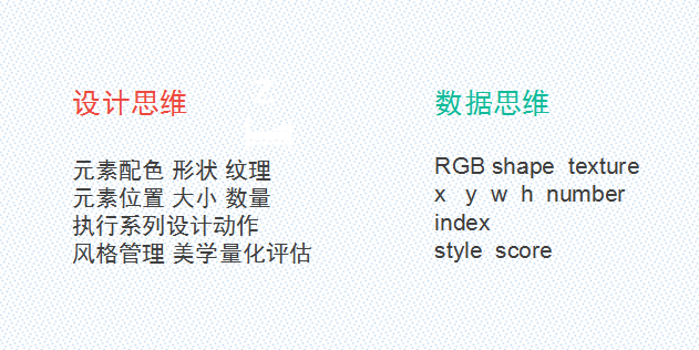 设计师充当一个导师的角色,将设计拆解为数据,更细分的数据能让机器去学习。设计的规则不适用于机器,美学是主观性的,机器没有人类的七情六欲,大量的数据让机器去了解设计。其中,标注让机器学习,设计师根据自已的实战经验和用户反馈,将机器的智能化设计作品进行标注分等级,让机器不断学习。对此,设计评估体系的建立尤为重要。