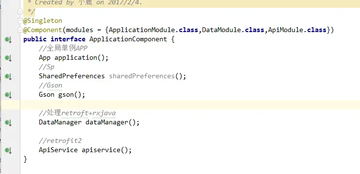 这样component和Modeule就配置完成了,返回App.class编译。private static ApplicationComponent mApplicationComponent;