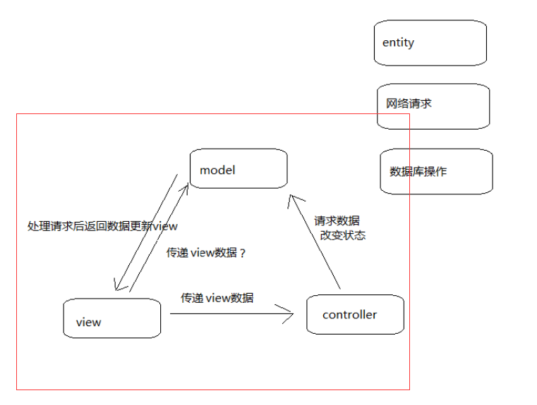 - 从图中可以看出用户向View发送指令,再有View直接要求Modle改变状态