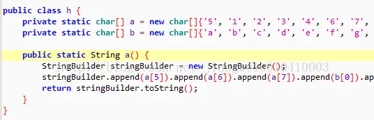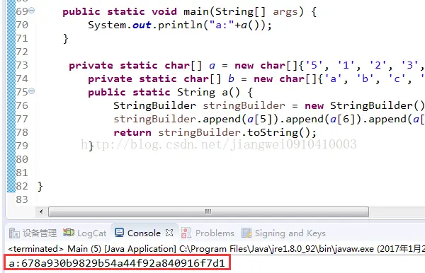 这里貌似有一个字符串的构造算法,我们为了看到最终的字符串内容,可以新建一个简单的Java项目,然后把这个方法打印一下看看结果:
