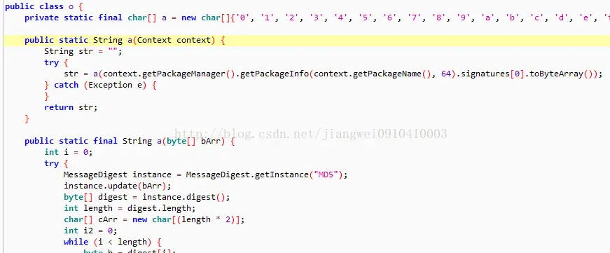 看到这个最终生成的字符串内容是:678a930b9829b54a44f92a840916f7d1,然后再看一下equals的o.a的方法: