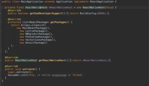 2)Application默认创建工程时,就会继承ReactApplication