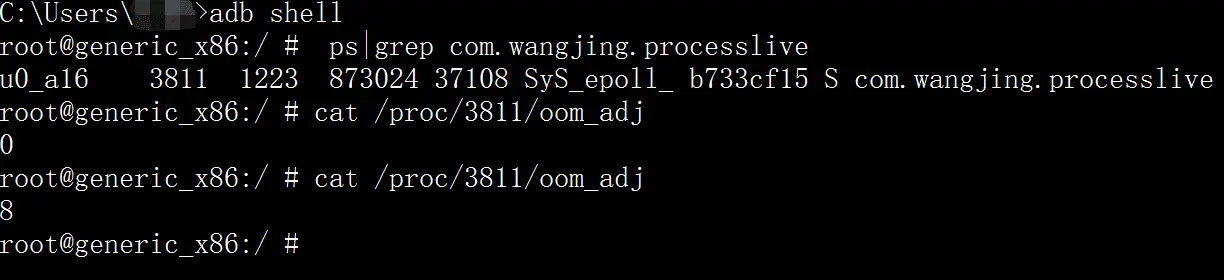 adj值变成了8,8代表这个进程是属于不活跃的进程,你可以尝试其他情况下,oom_adj值是多少,但是每个手机的厂商可能不一样,oom_adj值主要有这么几个,可以参考一下。