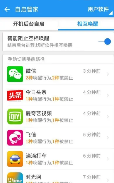 相互唤醒的意思就是,假如你手机里装了支付宝、淘宝、天猫、UC等阿里系的app,那么你打开任意一个阿里系的app后,有可能就顺便把其他阿里系的app给唤醒了。这个完全有可能的。此外,开机,网络切换、拍照、拍视频时候,利用系统产生的广播也能唤醒app,不过Android N已经将这三种广播取消了。
