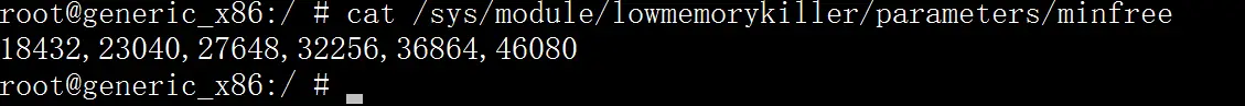 上面是进程的分类,进程是怎么被杀的呢?系统出于体验和性能上的考虑,app在退到后台时系统并不会真正的kill掉这个进程,而是将其缓存起来。打开的应用越多,后台缓存的进程也越多。在系统内存不足的情况下,系统开始依据自身的一套进程回收机制来判断要kill掉哪些进程,以腾出内存来供给需要的app, 这套杀进程回收内存的机制就叫 Low Memory Killer。那这个不足怎么来规定呢,那就是内存阈值,我们可以使用cat /sys/module/lowmemorykiller/parameters/minfree来查看某个手机的内存阈值。