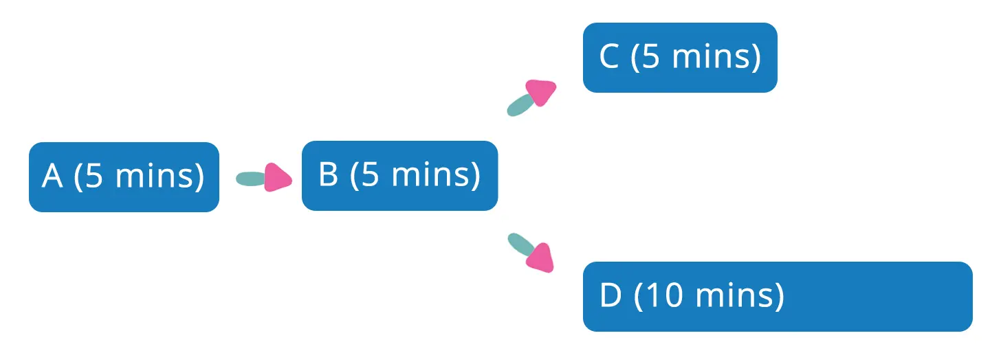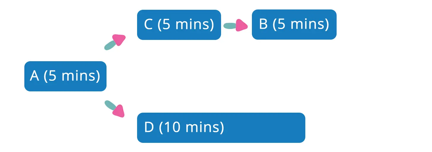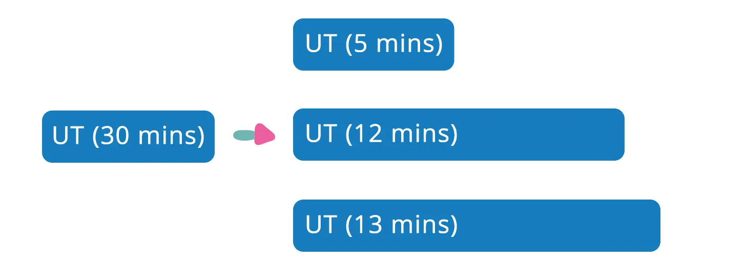 假设Pipeline单元测试需要30分钟才能运行结束,可以通过切分单元测试多进程并发执行,如下图所示,可以节省近20分钟的运行时间: