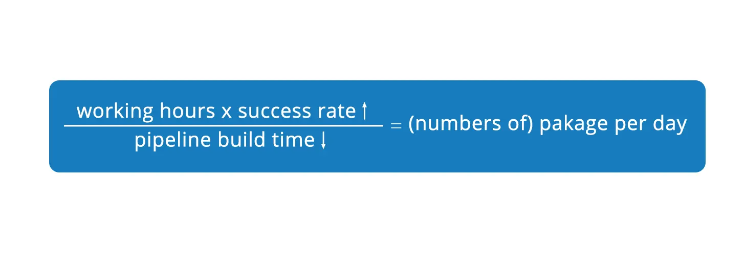 团队在改进的过程中发现可以通过下面的公式大致估算出平均每天Pipeline产出的可用包的数量: