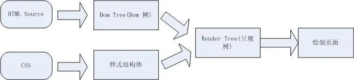 在讨论页面重绘、回流之前。需要对页面的呈现流程有些了解,页面是怎么把html结合css等显示到浏览器上的,下面的流程图显示了浏览器对页面的呈现的处理流程。可能不同的浏览器略微会有些不同。但基本上都是类似的。