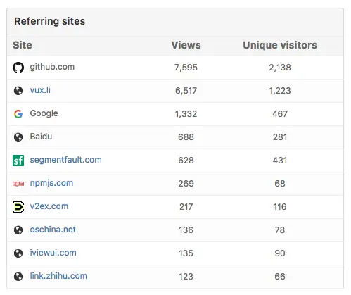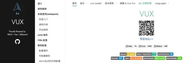 当时为了显得正式以及觉得一个短域名有利于使用者输入域名查看文档,注册了域名 https://vux.li/。虽然我现在并不知道有多少同学实际上是直接输域名访问文档的。