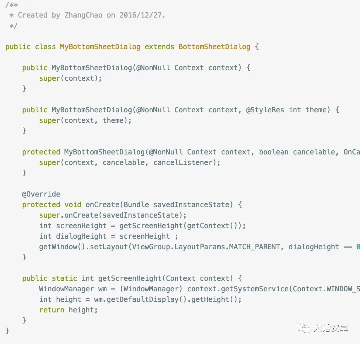 答案如下,重写BottomSheetDialog。以下是重写BottomSheetDialog的全部代码,将布局高度设置为全屏幕高度: