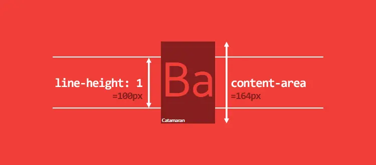 在我们的示例中,Catamaran字体定义了0个单位的线间距(Line Gap),因此line-height: normal的值将等于内容区域,也就是1640个单位或1.64。