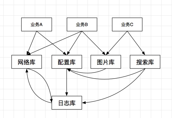 面条式的耦合,导致上层业务受限于底层基础库的依赖影响,BUG排查缓慢、新功能增加效率随代码量递增而不断递减。
