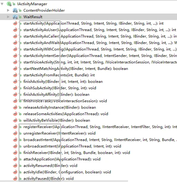 IActivityManager接口定义的API,启动四大组件的等多种请求都在里面。