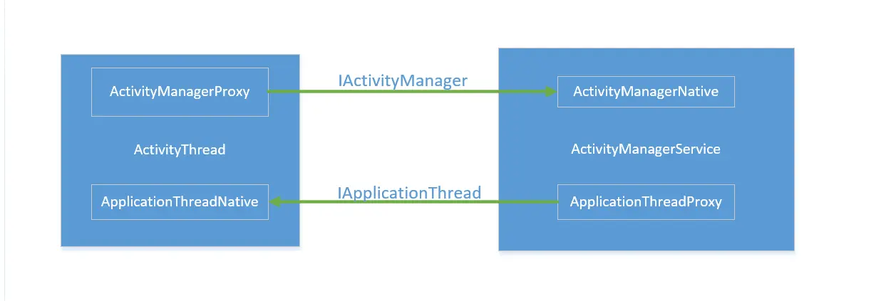 对上面的理解不是太明白,在看下面这张图,AMS到Activity这个过程建立了一个Binder,Activity到AMS这个过程也建立了一个Binder,这就能相互通信了。