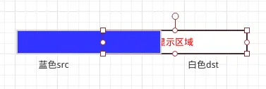 以下图为例,根据当前进度画出一个和整个按钮相同大小的蓝色矩形( dst ),再画一个同样大小的白色矩形,只显示白色矩形中两个重叠的部分不就好了吗?对,我们联想到了两个图层重叠时的显示模式,就是这里的 SRC_ATOP 模式。