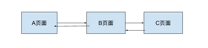 Android系统正常的跳转方式 A页面 intent 到 B页面,B页面intent C页面,他们之间的联系是很亲密直接的。彼此间的跳转都是相互intent,如下图所示: