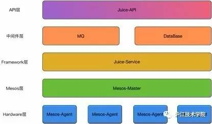 我们的主角——Juice就是具有这样能力的基于Mesos框架的开源任务调度系统(名称的由来只是因为我们的开发人员,在开发时喜欢喝果汁而命名)。它的基本思想是:在获取到任务需求后,通过Mesos框架的API通知Mesos需要运行的任务资源。比如要执行转码任务,需要8核的CPU、4G的内存和50G的存储空间,Mesos会在相应的集群内寻找合适的服务器资源执行任务,任务执行成功或失败Mesos也会通知框架并得到记录。