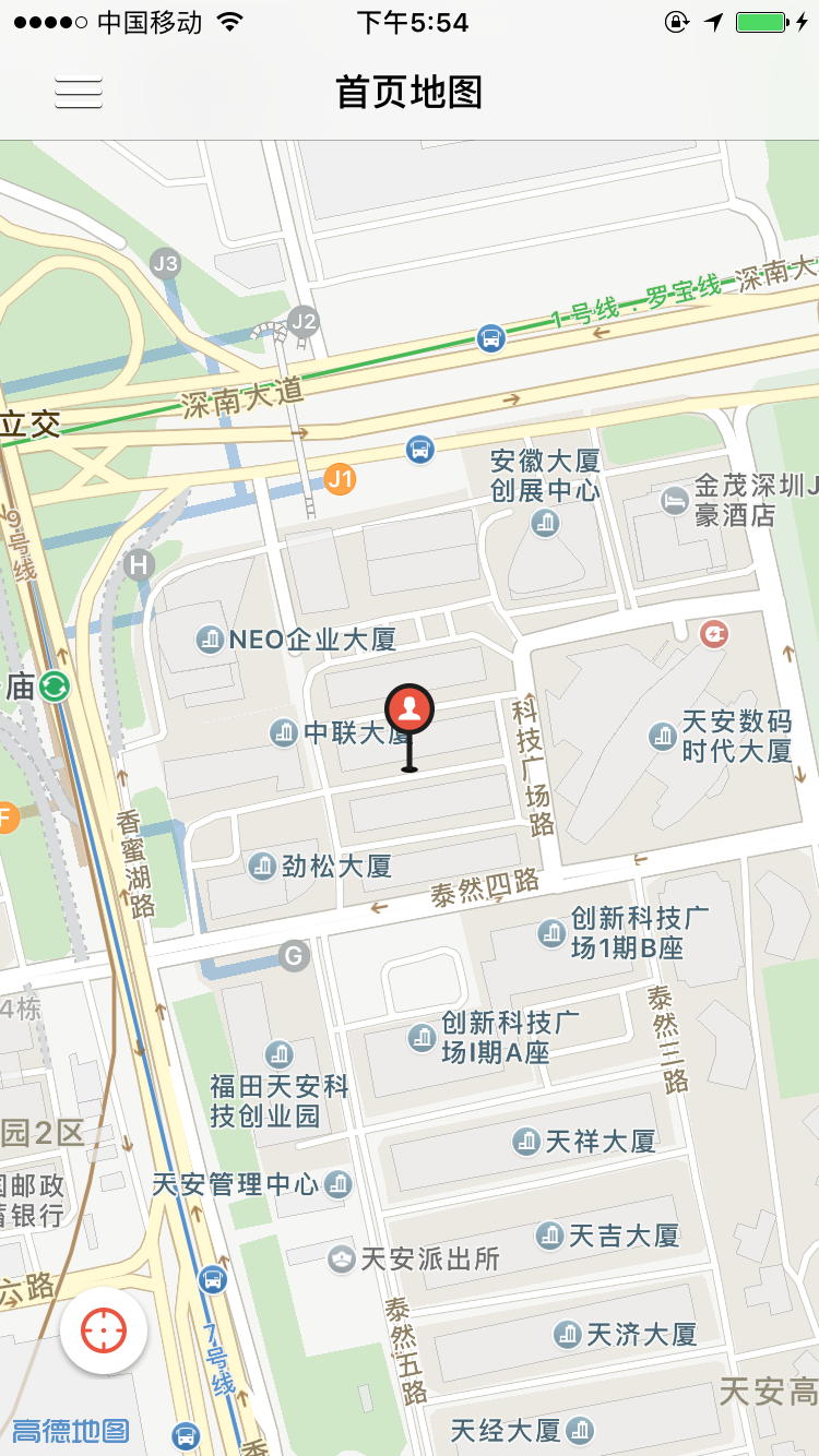 - (MAMapView *)mapView { if (!_mapView) { _mapView = [[MAMapView alloc] initWithFrame:self.view.bounds]; self.mapView.centerCoordinate = CLLocationCoordinate2DMake(22.547,114.085947); _mapView.showsCompass = NO; _mapView.mapType = MAMapTypeStandard; _mapView.showsScale = NO; _mapView.showsUserLocation = YES; _mapView.userTrackingMode = MAUserTrackingModeNone; _mapView.delegate = self; _mapView.rotateEnabled = YES; _mapView.autoresizingMask = UIViewAutoresizingFlexibleWidth | UIViewAutoresizingFlexibleHeight; [_mapView setZoomLevel:(17.2f) animated:YES]; _mapView.customizeUserLocationAccuracyCircleRepresentation = YES; _mapView.centerCoordinate = CLLocationCoordinate2DMake(22.547,114.085947); } return _mapView; }3.代理方法的实现