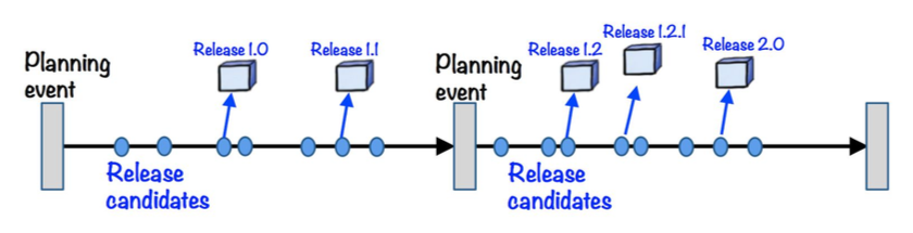 注意,产品增量,并不像听起来那样是一个大爆炸的发布版本。它是一个同步点,一个时间和地点,团队们聚集在一起,彼此对齐。这与发布周期是完全无关的。不同的团队以不同的周期发布,这取决于他们工作的性质。因此我们按节奏规划,按需发布。