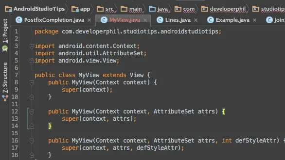 - 你可以隐藏这个导航栏。通过快捷键来显示。可以让Android Studio的屏幕显示内容可以更多。
