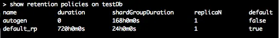 alter retention policy "rp_name" on "db_name" duration 30d default - 删除Retention Policies