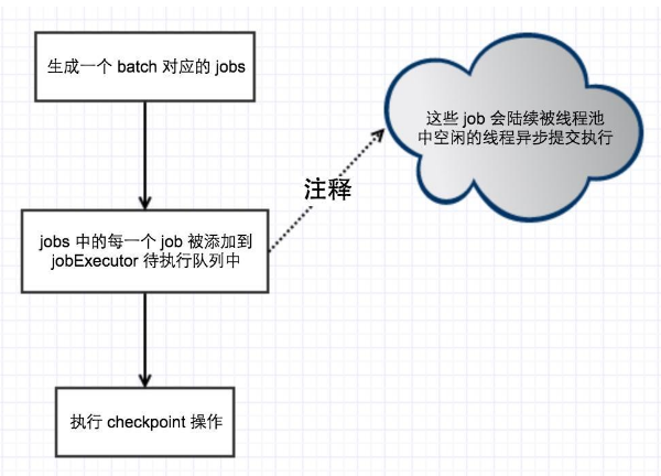 就会存在这种情况, 我们对 job1 执行 checkpoint 操作, 然后 job1 被调度执行, 从kafak 拉取数据处理, 然后结果保存在 hbase 中, 保存了一半, 机器挂了, 如果重启,recover, 这时候 job1 就会被重复执行, kafka 中的数据就会被重复消费, hbase中的部分指标也就多加了一份,
