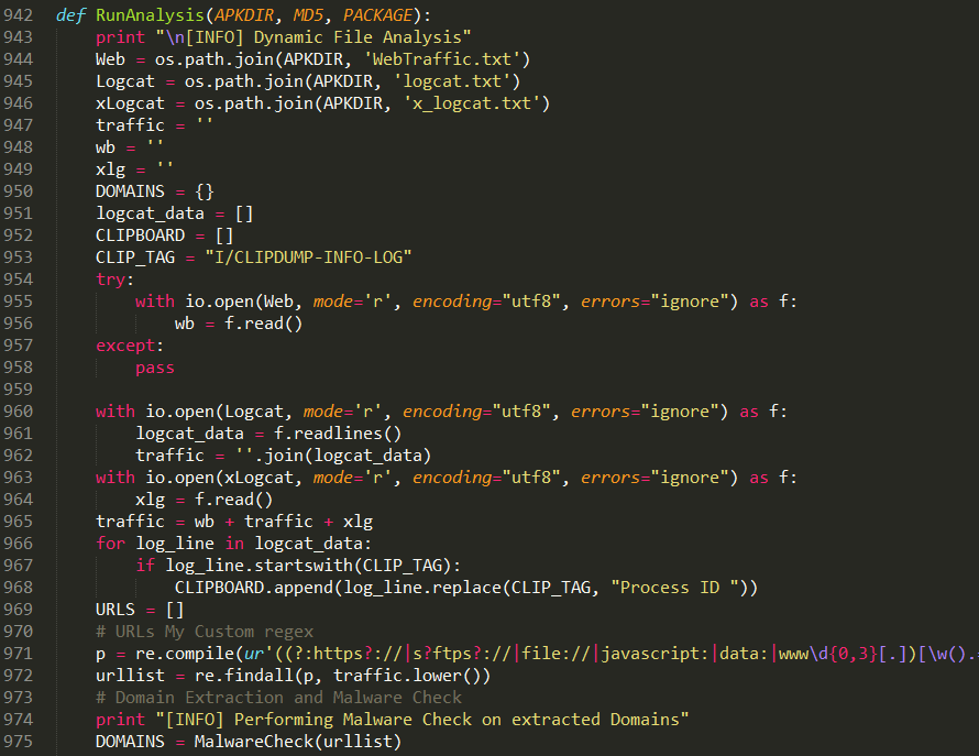 RunAnalysis函数主要处理样本运行后留下的WebTraffic.txt、logcat.txt、x_logcat.txt日志文件。