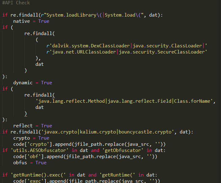 通过匹配常见API字符串来判定是否有调用这些API: