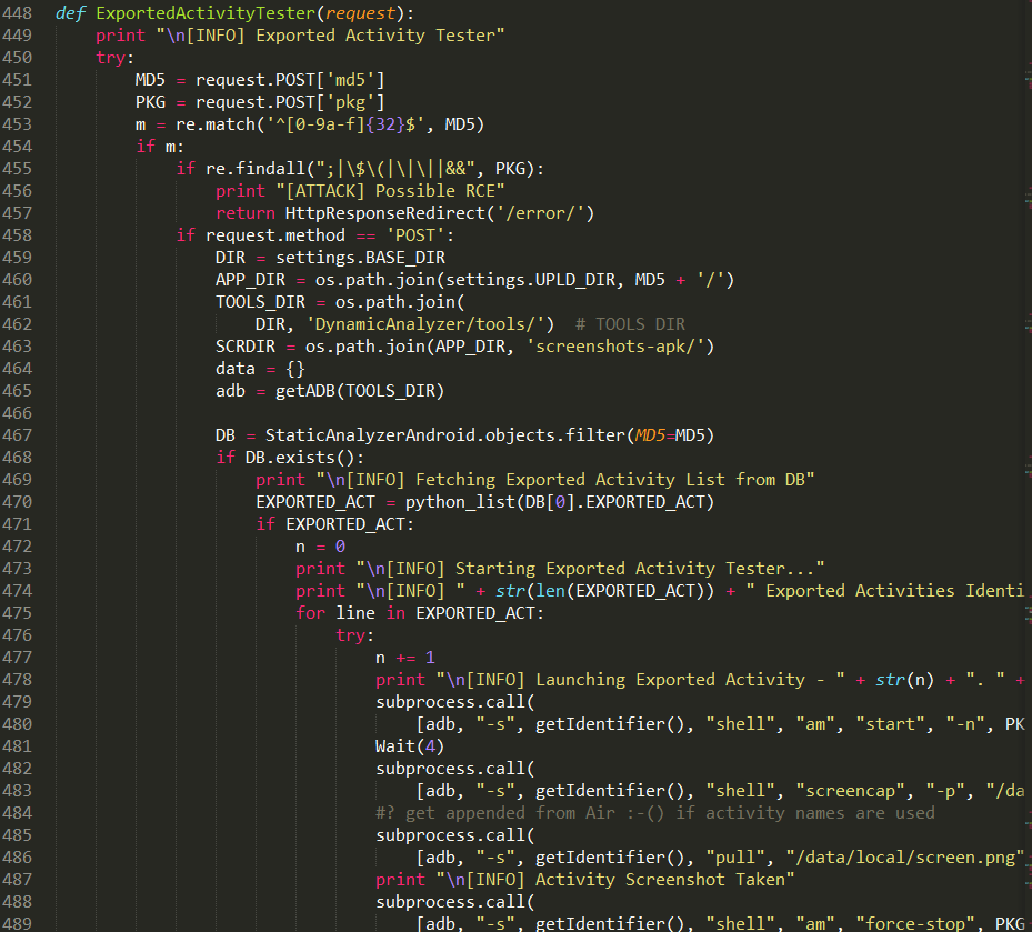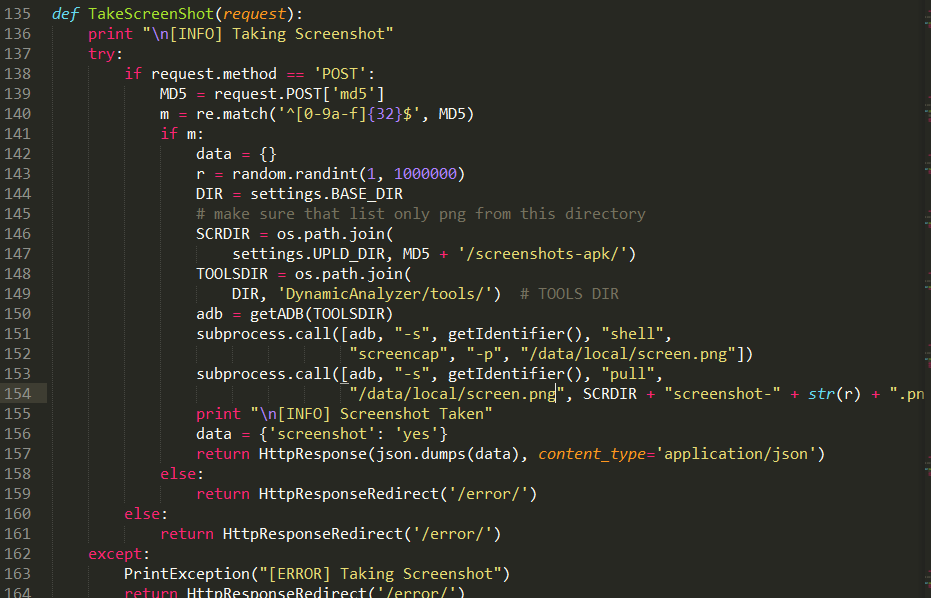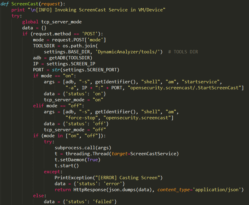 MobSF中提供实时操作功能,其实现主要利用屏幕录制软件screencast提供的服务,其实现代码如下: