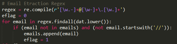 通过正则匹配Email的格式来提取源码中的Email: