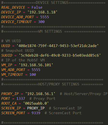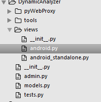 MobSF同时还支持对安卓程序的动态分析,使用virtualbox运行app,并使用virtualbox提供的接口完成代理设置、虚拟机的操作,利用adb命令安装运行app,并获取app的运行相关信息,进行分析。 其动态分析主要目录结构如下图: