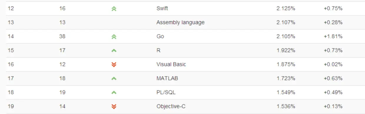 我们看TIOBE的2月编程语言排行榜: