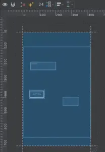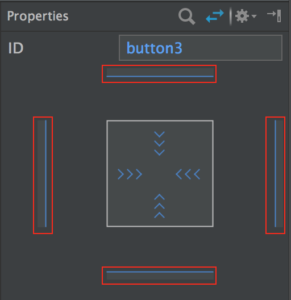 我们要探索的主要分为两大部分。第一部分是方形内部,这部分是用来设置视图的尺寸。另一部分是方形外部的蓝色的线条,这些是用来调整视图的约束关系的。