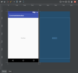 上图中我们看到的两个布局其实是同一个布局。左边那部分就是我们将在设备中看到的 UI 界面。右边那部分称之为蓝图(blueprint)。当你在设计时这些都非常有用。你可以很轻易地看到每个视图的外边距、边缘以及它们之间是否有冲突。我就当作你们已经知道了怎么去拖拽视图到 Design 编辑器中,并且知道怎么去创建与父布局或其他视图的约束关系。我要开始介绍下一个步骤了。