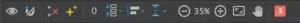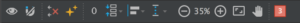 在开始之前,为了便于后面解释,我会给这些图标起个名。从左到右开始分别是:眼睛图标、磁铁图标、交叉箭头图标、星星图标、数字盒子、背包图标、对齐图标、指示线图标、放大图标、缩小图标、适应屏幕图标、平移缩放图标、警告和错误图标。
